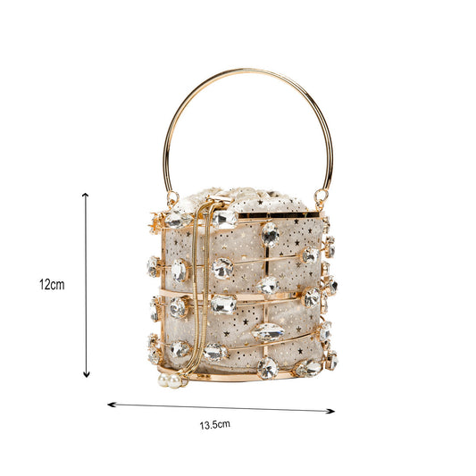 Metal Hollow Diamond Handbag Velvet Dinner Pearl Bracelet Bag