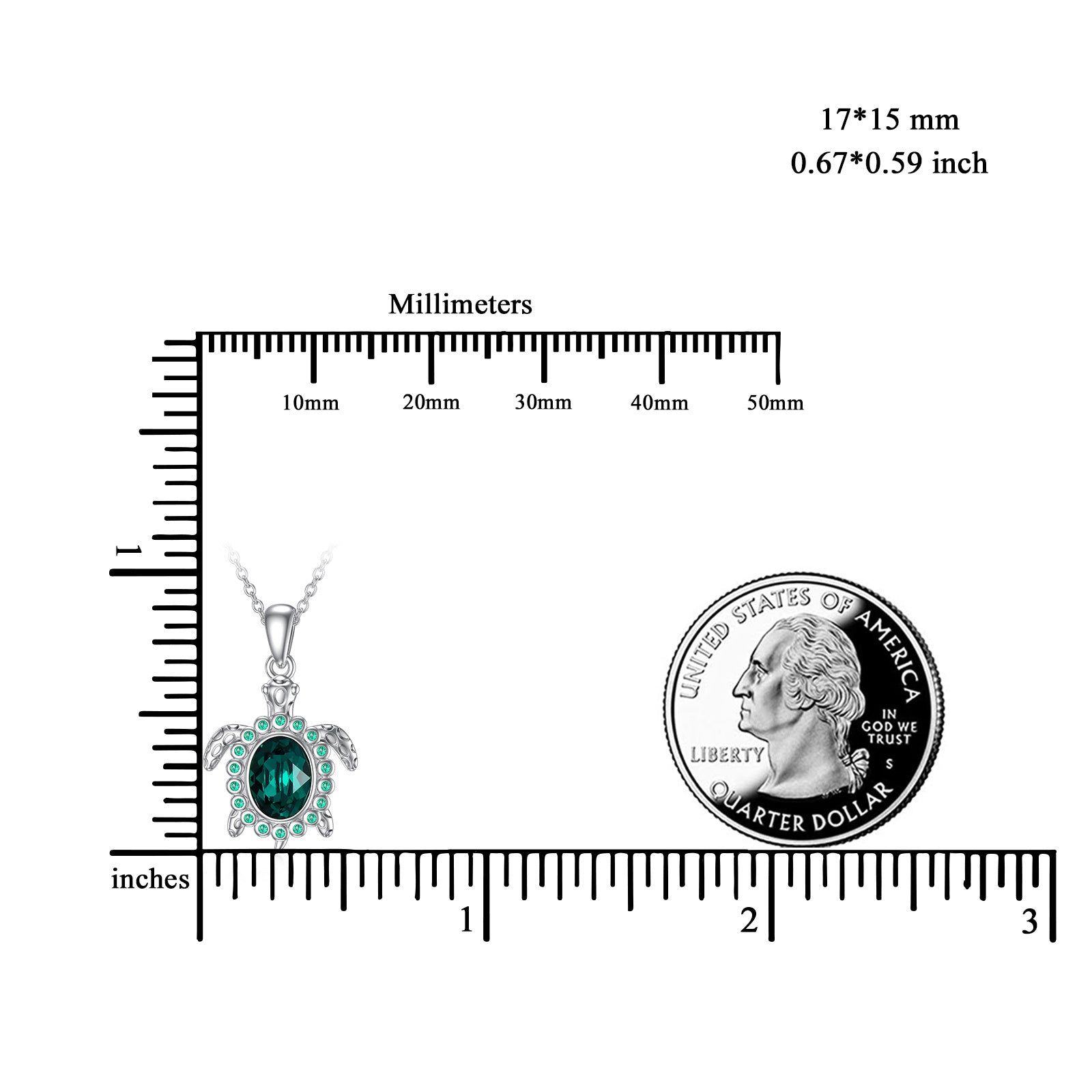 925 Sterling Silver Green Crystal Turtle Necklace for Women