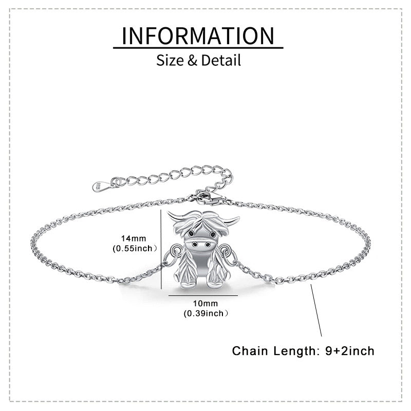 925 Sterling Silver Highland Cow Anklet Braclet Animal Jewelry Gifts